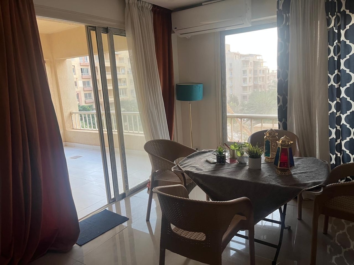 Have fun with the whole family at this simple and stylish spot. The apartment is located at Degla Palms Compound, 6th of October district off AlWahat road. Another giant project of Memaar Al Morshedy developers. It is a 7 minutes drive to Carrefour, 10 minutes to Mall of Egypt, and 15 minutes to Mall of Arabia. Giza’s famous attractions of The Pyramids, Sphinx and The Grand Egyptian Museum are just a 30 minutes drive. The community is safe & quiet thanks to 24/7 security personnel on site.