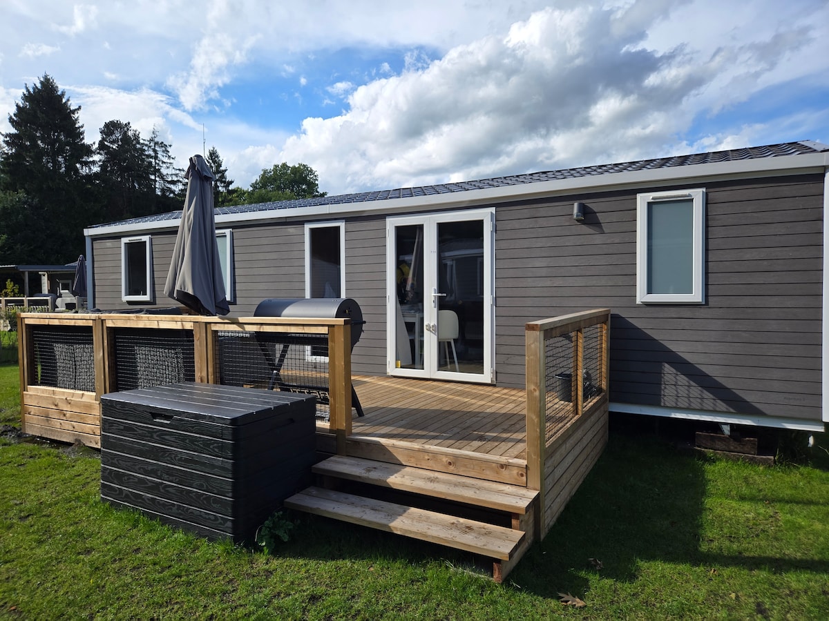 Cozy chalet with canopy and luxurious furnishings and unique views from living room and terrace. The chalet has its own parking space and is located in a very quiet park in Papenvoort (Drenthe). The park lies between the woods, near a heath area and beautiful vast swimming lake. It is a perfect spot for peace seekers who love hiking and biking. The chalet is an ideal base for the Pietenpad There is a master bedroom and a sturdy bunk room.