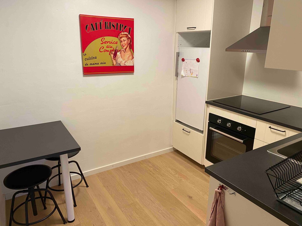 Enjoy a private stay in this quiet and centrally located apartment. Cozy and newly renovated two bedroomed apartment with private entrance, kitchen, bathroom and two rooms. Close to nature and water, with only 3 km to the centre of Aalborg. Public transport outside the door and multiple shopping options close by. Close to The Aalborg Tower, Aalborg Zoo and Shopping centre. Quiet and attractive area with a lake and the water within walking distance. Perfect for longer work associated stays.