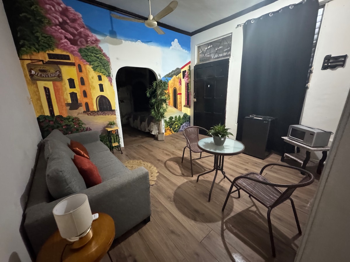 Stay in the heart of Acayucan in a practical and cozy mini apartment, ideal for business trips or rest. Enjoy a comfortable double bed, TV, air conditioning and fan for your comfort. The kitchen is equipped with a mini-fridge, coffee maker, table and basic utensils, as well as an armchair with a side table, closet and private bathroom with a mirror. Its central location keeps you close to shops, restaurants, and transportation, making your stay even more practical and enjoyable.