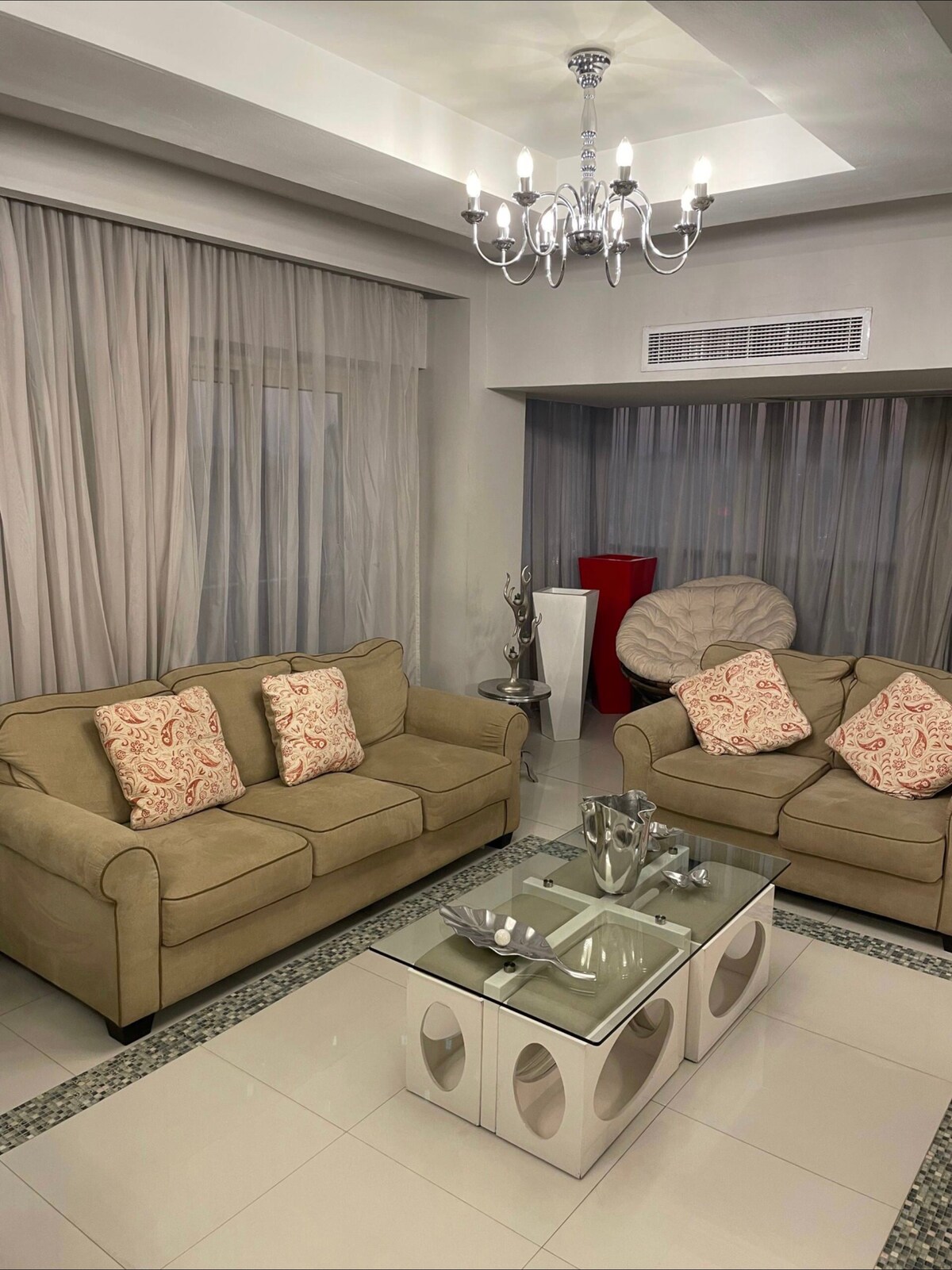 This apartment is the ideal choice for those wishing to live in a quiet and safe area, as all basic services are available in the area surrounding the apartment. This apartment is suitable for all purposes, whether you are looking for a stay for business or leisure. In addition, the building has excellent services such as 24-hour security and maintenance, which makes staying in the apartment safer and more comfortable.