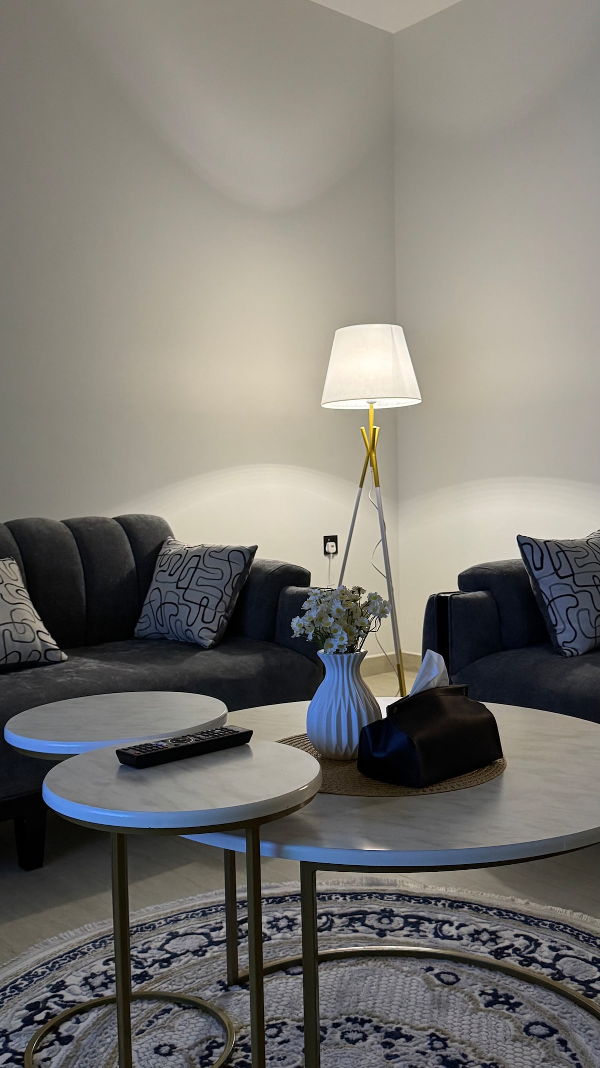 شقة مكونه من صالة وغرفة نوم ومطبخ بجميع الادوات وحمام ويتوفر واي فاي وتلفزيون 65 بوصة بجميع الاشتراكات وسفتي بوكس ودخول ذكي ووفرة المواقف