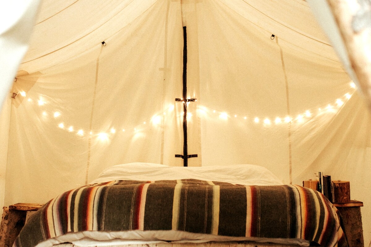Immerse yourself in a true wilderness escape with our off-grid Rustic Wilderness Retreat, where country calm surrounds you in a cozy, furnished Outfitter’s Tent by the creek. Enjoy lantern light, a cast iron wood-burning stove, and a California King bed with quality linens. Unwind in your private wood-burning sauna, cook outdoors, and relax by the firepit as you take in the surreal beauty of nature and its peaceful rhythm.