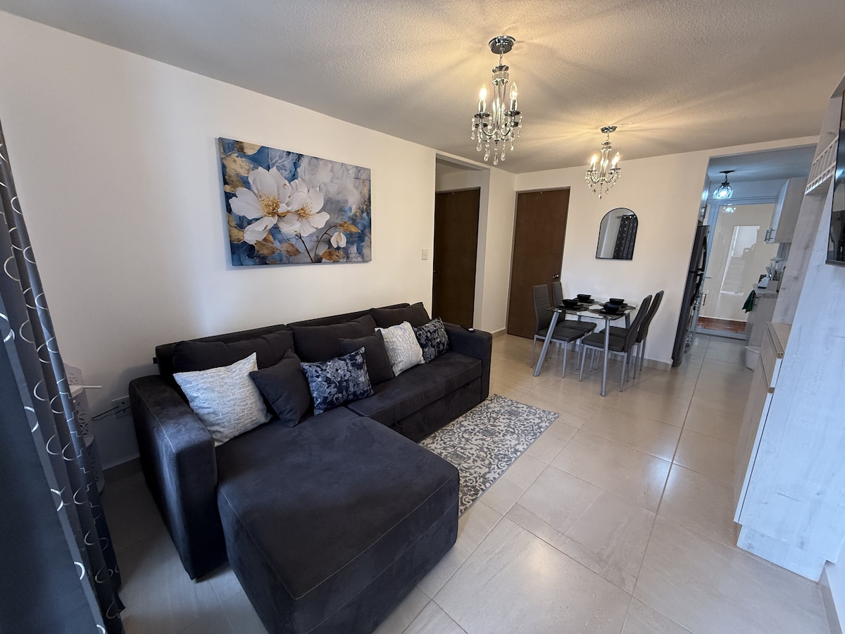 Newly & beautiful apartment inside of La Luminaria residences. Ideal for four people. This apartment has all you need for a perfect stay. The Rooftop is totally private and has charcoal grill where you can enjoy they space and views from the terrace roof. Parkinglot Smart lock (Keyless) Security 24/7 Kitchen fully equipment Smart TV with Netflix included Fast internet/Wifi (Fiberoptic)