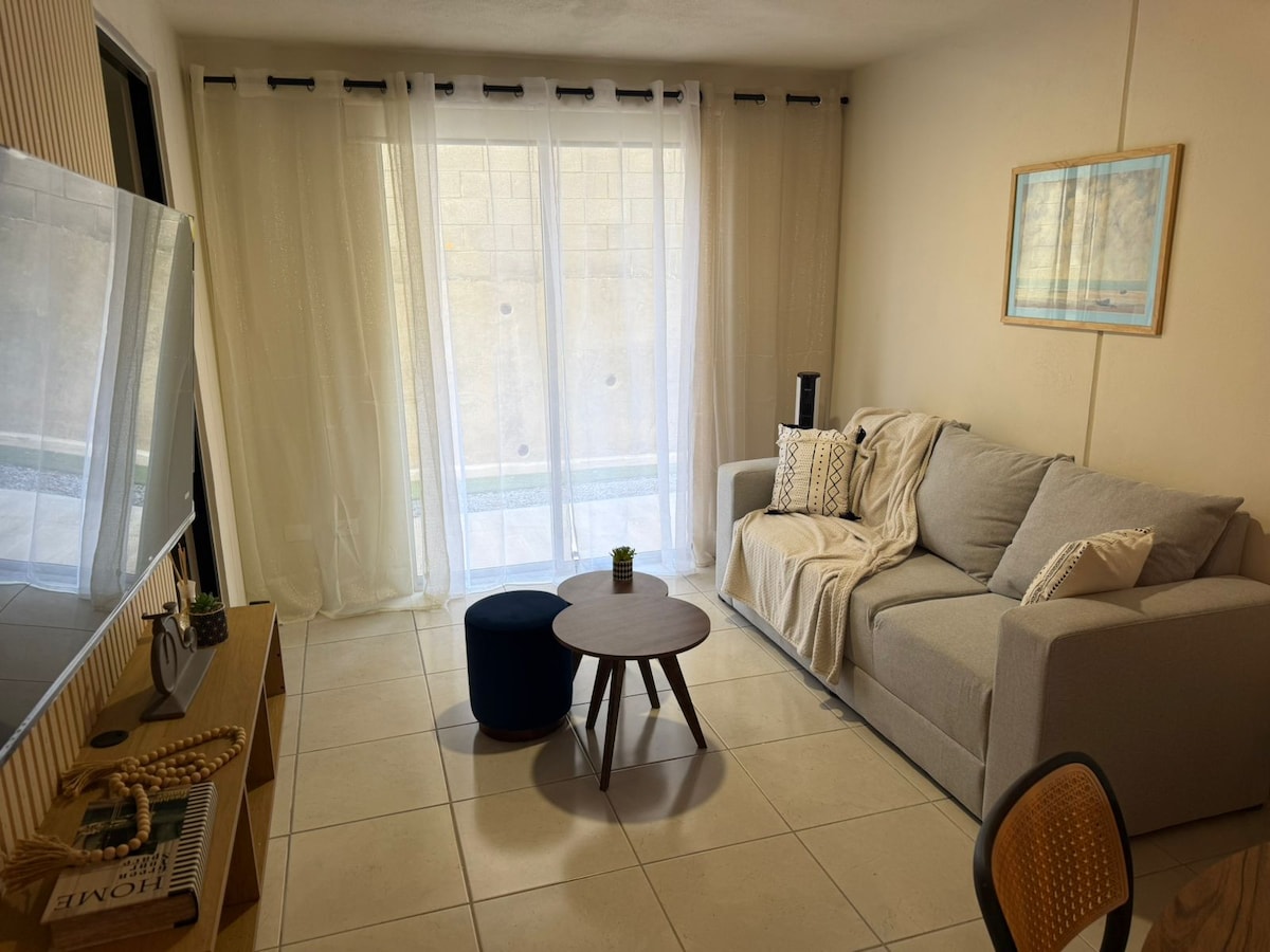 New and modern apartment with luxury finishes, with two bedrooms with double bed and closet each. *The (small) TV in the master bedroom (1) only has YouTube and Netflix, the (large) TV in bedroom 2 has VIX, Netflix and YouTube. Kitchen and dining room. It is a quiet and safe area, ideal for spending a few days away from the noise of the city. The apartment is booked in full. Public transportation, Uber, and taxis are available for transportation.