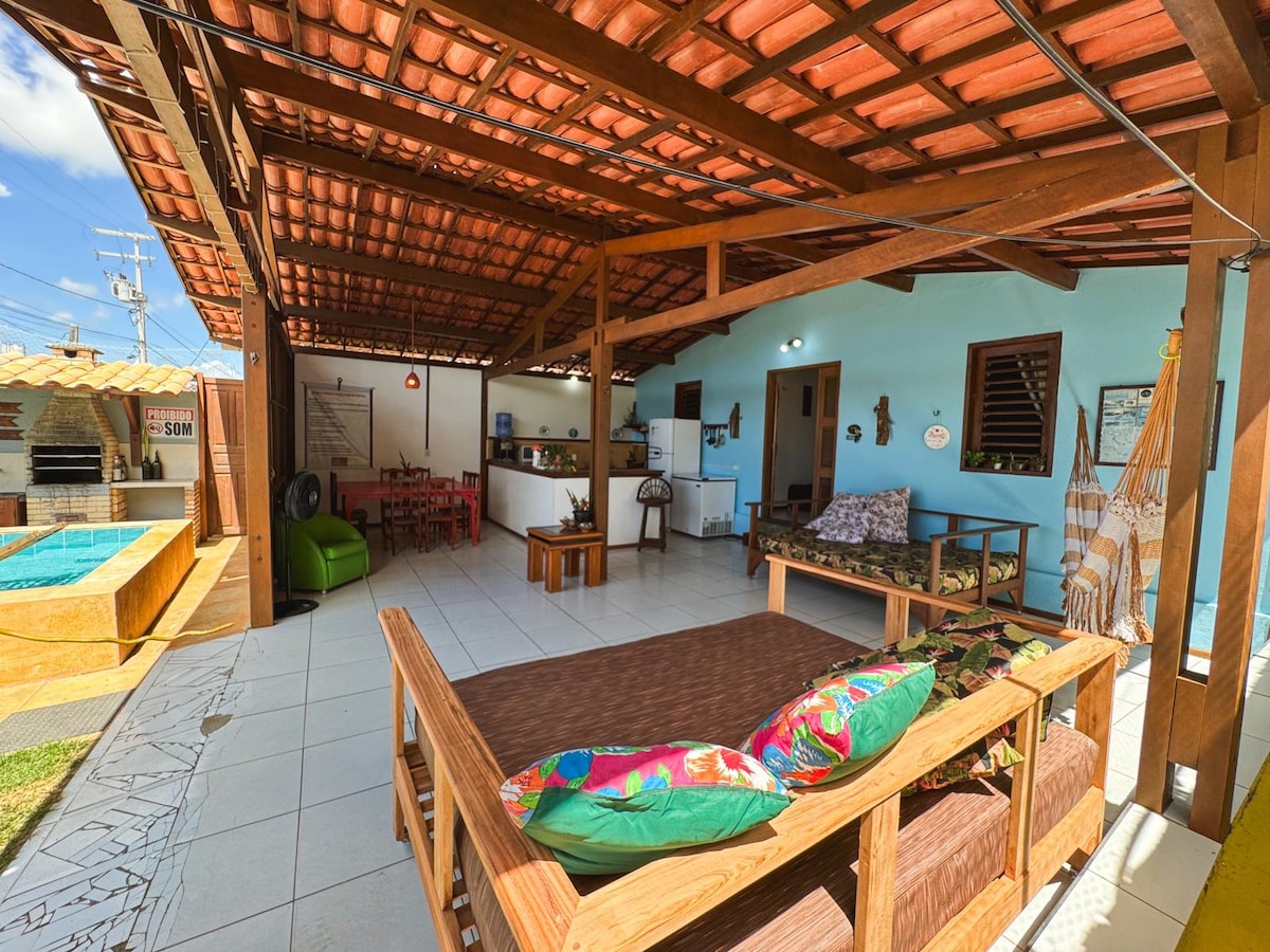Cozy house located in the heart of Icaraizinho de Amontada, 1 minute from the beach. With 3 en-suites and 1 bedroom with an external bathroom, all with electric showers. Bed and bath linens, air conditioning in all rooms, equipped kitchen, swimming pool with deck, barbecue, large garden and much more. Your family will love enjoying the tranquility of a beach house with personalized service. Accommodates up to 10 people, including children.