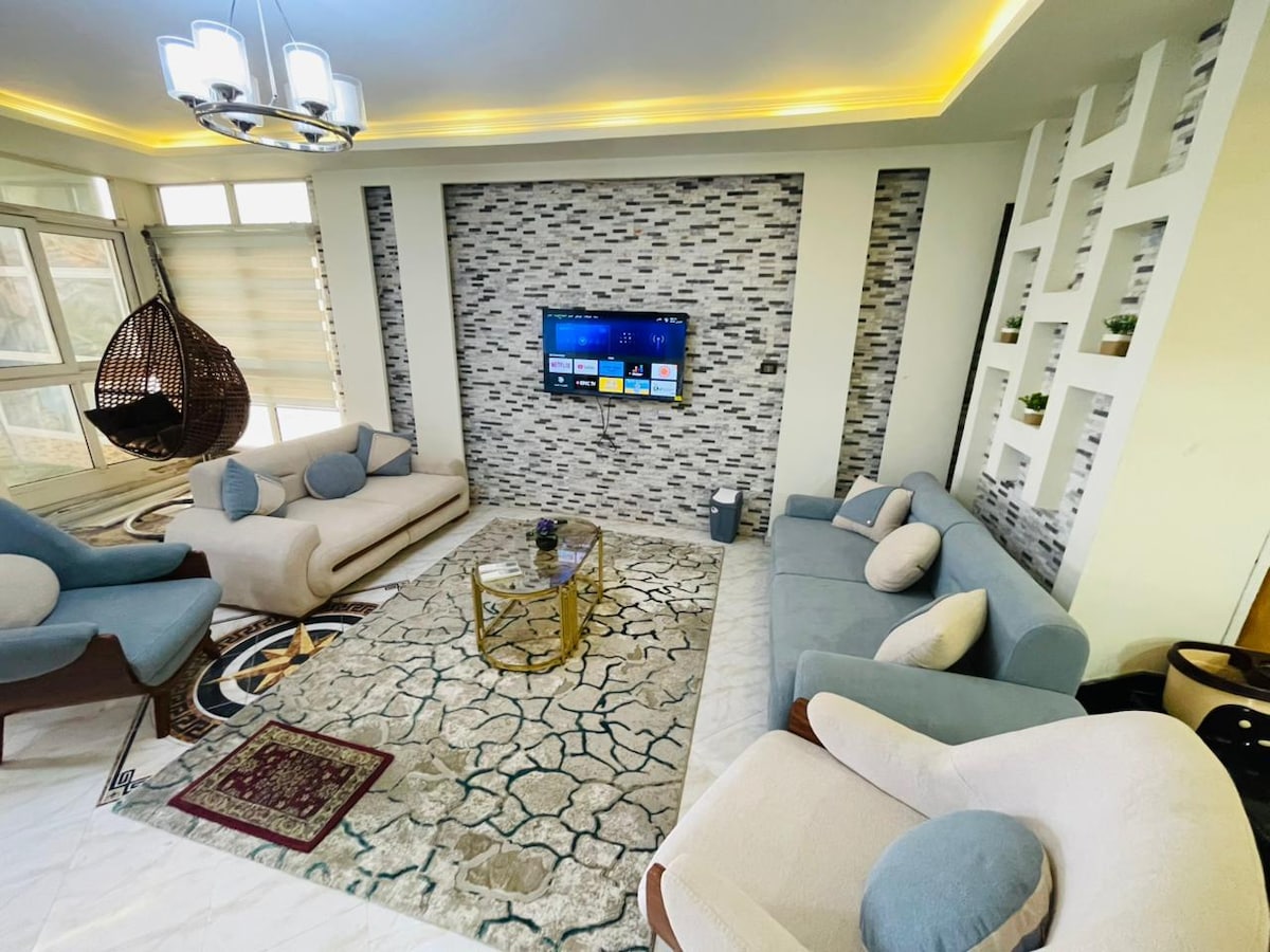Welcome to the Nubian Villa! Discover a serene escape at this beautifully designed lakeside retreat, just 30 minutes from Alexandria and 10 minutes from the International Borg Alarab airport. Nestled on the tranquil shores of Lake Marriott, the Nubian Villa offers an unparalleled blend of peace, comfort, and natural beauty—perfect for a relaxing getaway.
