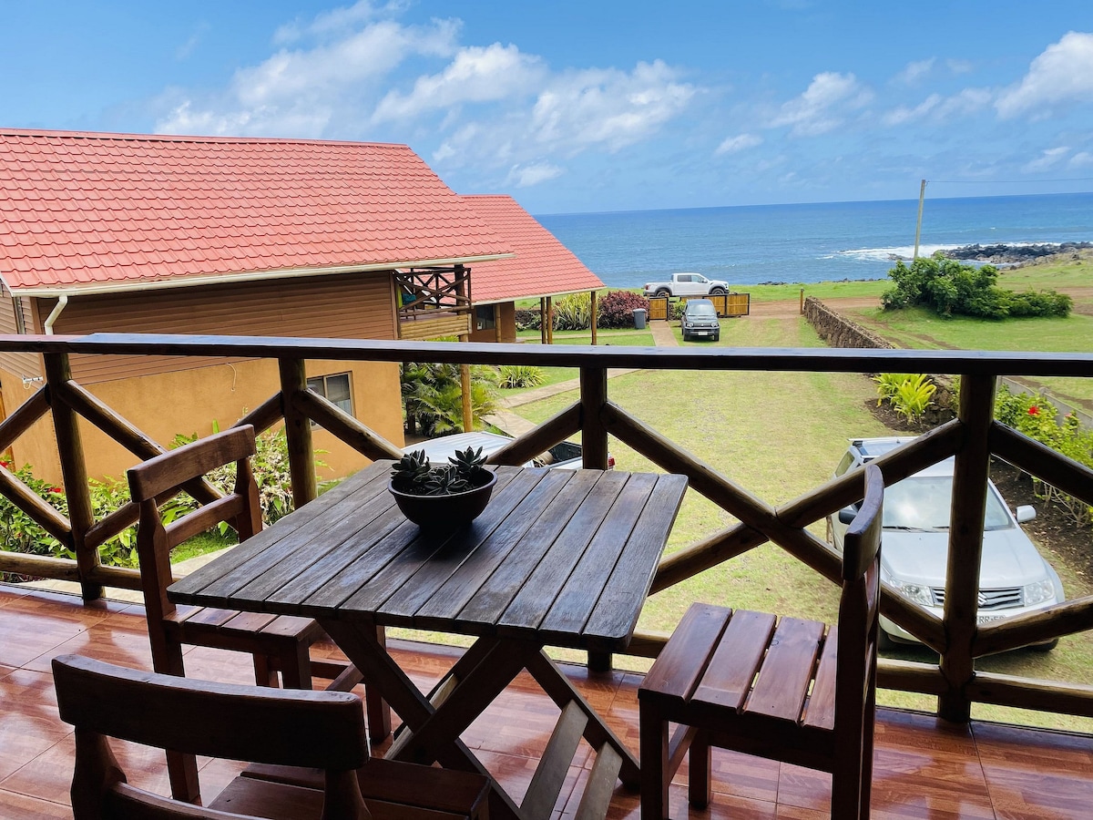 Vave cabin facing the sea and overlooking the moai