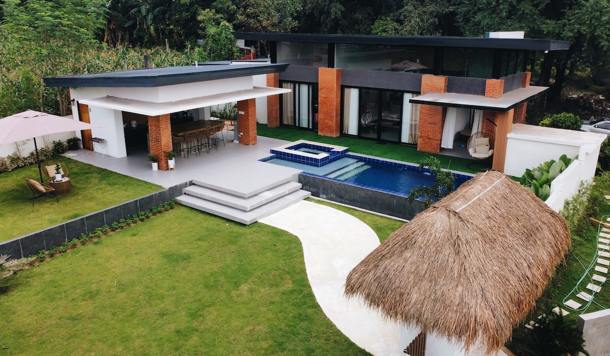 Balai Urunjing is an industrial-balinese pool villa in the heart of Teresa, Rizal, located an hour away from Manila. The 373 sqm private property includes a 1-bedroom villa with 2 toilet & bath, adult infinity pool, lounge bubble pool, 2-car garage, patio, tropical garden, outdoor dining, outdoor shower. Built March of 2022, Balai Urunjing has appealing architectural design and charming interiors. The balinese pool has natural green sukabumi stones imported from Indonesia.