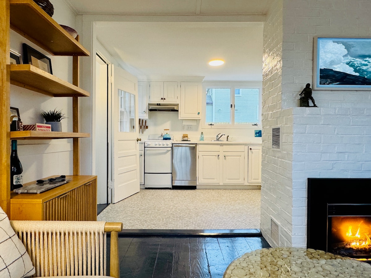 Our historic carriage house in Downtown Rockport has everything you need for the perfect getaway, all year long! A two-minute walk to beaches, shops, galleries, parks, and playground. A peaceful family and pet-friendly space with all the amenities you need for a comfortable stay: laundry, full kitchen, queen sized bed with en-suite bathroom and a sun room that converts to an extra sleeping space perfect for kids. A 5 minute walk to the train for day trips to Salem, Gloucester, and Boston!