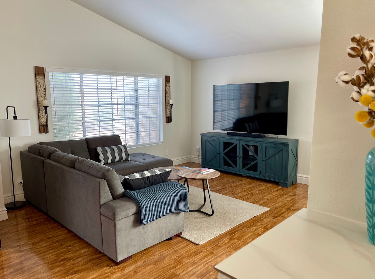 Step into the newly renovated Chateau on Rose Garden, a 3-bed, 2-bath home with a loft in North Phoenix. Discover modern comforts indoors, with vaulted ceilings, a sleek kitchen, and a loft workspace, the perfect blend of style and functionality. The quaint and unique backyard, complete with a fire pit, dining table, and various seating options throughout, creates a relaxing oasis to savor the delightful Arizona weather. Welcome to your serene home away from home at Chateau on Rose Garden.