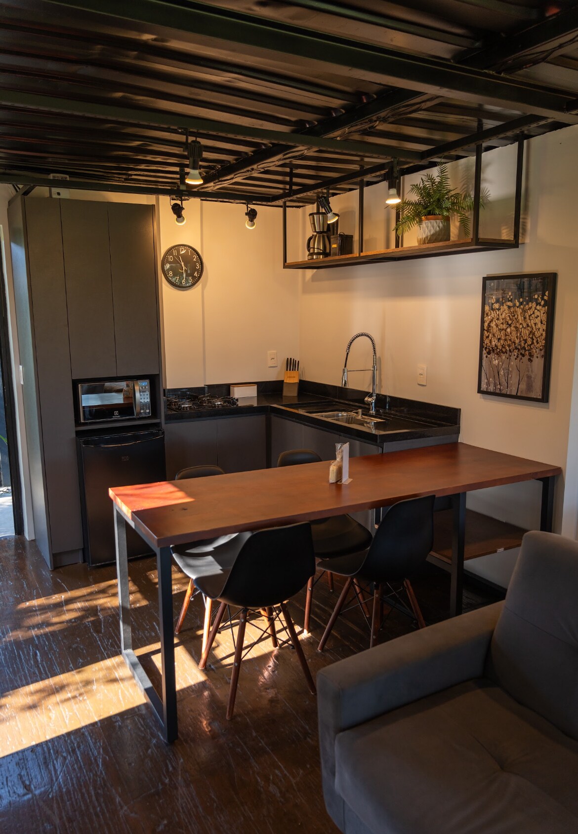 With a privileged location, the Vinhai hut is cozy and modern, based on a container that has already traveled the world. It has an integrated area of 40m², overlooking the vineyards of the Miolo winery. It is equipped with household and hygiene utensils, as well as a comfortable queen-size bed and a double sofa bed. Outside, you can enjoy the sunset on the terrace, have a picnic in the garden or gather around the fire pit. Ideal for getting out of the routine!