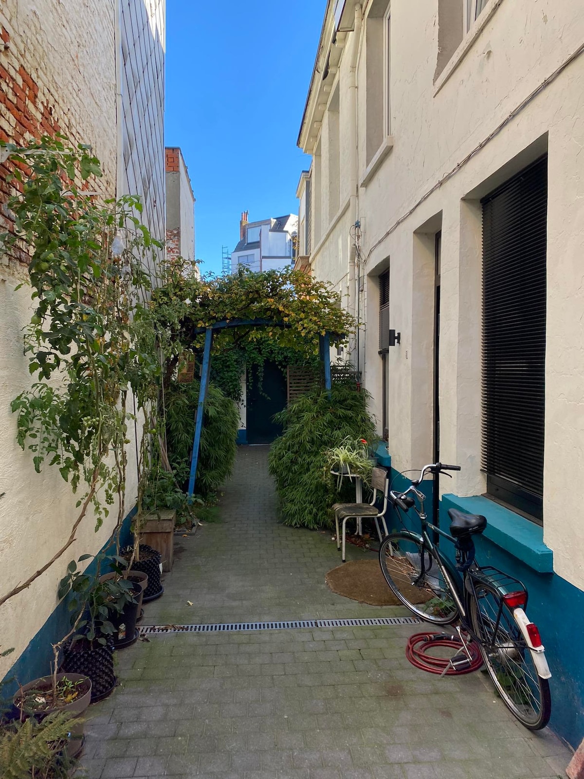 Within walking distance of Park Spoor Noord (50 meters) and only 2 km from the Centraal Station, this characterful alley house with a surprising amount of light and space is located. Thanks to its location between the Eilandje and the city center, you can enjoy the best of Antwerp: green, water and city vibes, all within cycling distance. Parking is feasible, but it is more difficult when arriving later in the evening. Is paid via 4411 app or text - housing prices.