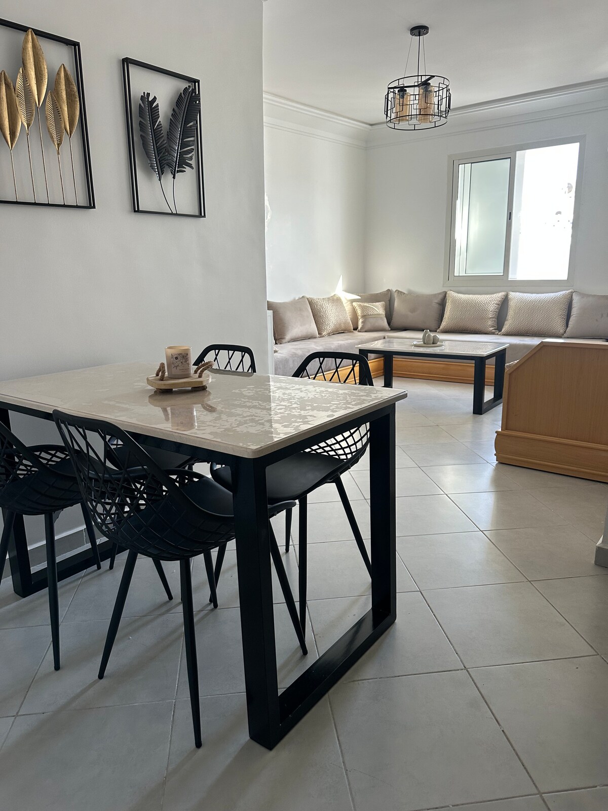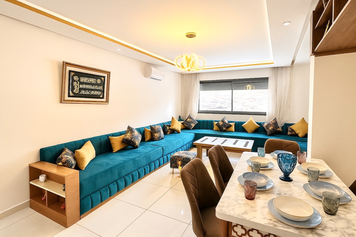 Create memories in this family & friendly accommodation. sublime, spacious and bright apartment of 60 mÂČ, located in a very quiet area, in a secure residence*. 5 minutes from the Agadir Marina and 10 minutes from the famous seaside resorts of Taghazout. The nearest beach is 600 meters away, accessible on foot or by car. Ideal for your vacation in any season, this apartment is also suitable for business stays, allowing you to discover the city at your own pace.