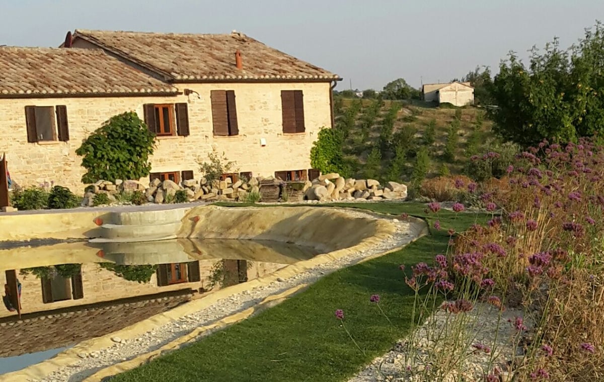 La Dolce Visciola is located among the green hills of the Marche region and overlooks a splendid panorama that stretches from the countryside to the sea. Ideal place for those who love to relax surrounded by nature. For those who want to recharge their batteries while staying at the farmhouse, you will find a large garden with swimming pool, bocce ball court and barbecue. In addition, for those who wish, you can taste some local delicacies from our farm, to fully experience your stay in the Marche through all the senses.
