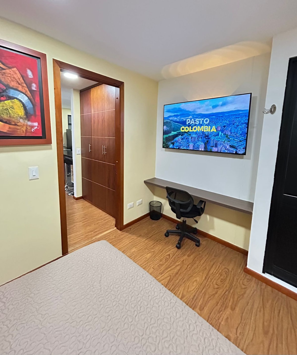 This modern apartment north of Pasto is located inside a gated complex that has private parking and 24-hour security, surrounded by green areas to enjoy with the family. Close to shopping centers, restaurants, bars and main roads. Inside you'll find everything you need: double bed, double sofa bed, fully equipped kitchen, smart TV, Wi-Fi, hot water and work area. It's a pet-friendly accommodation, so you can also come with your pet.