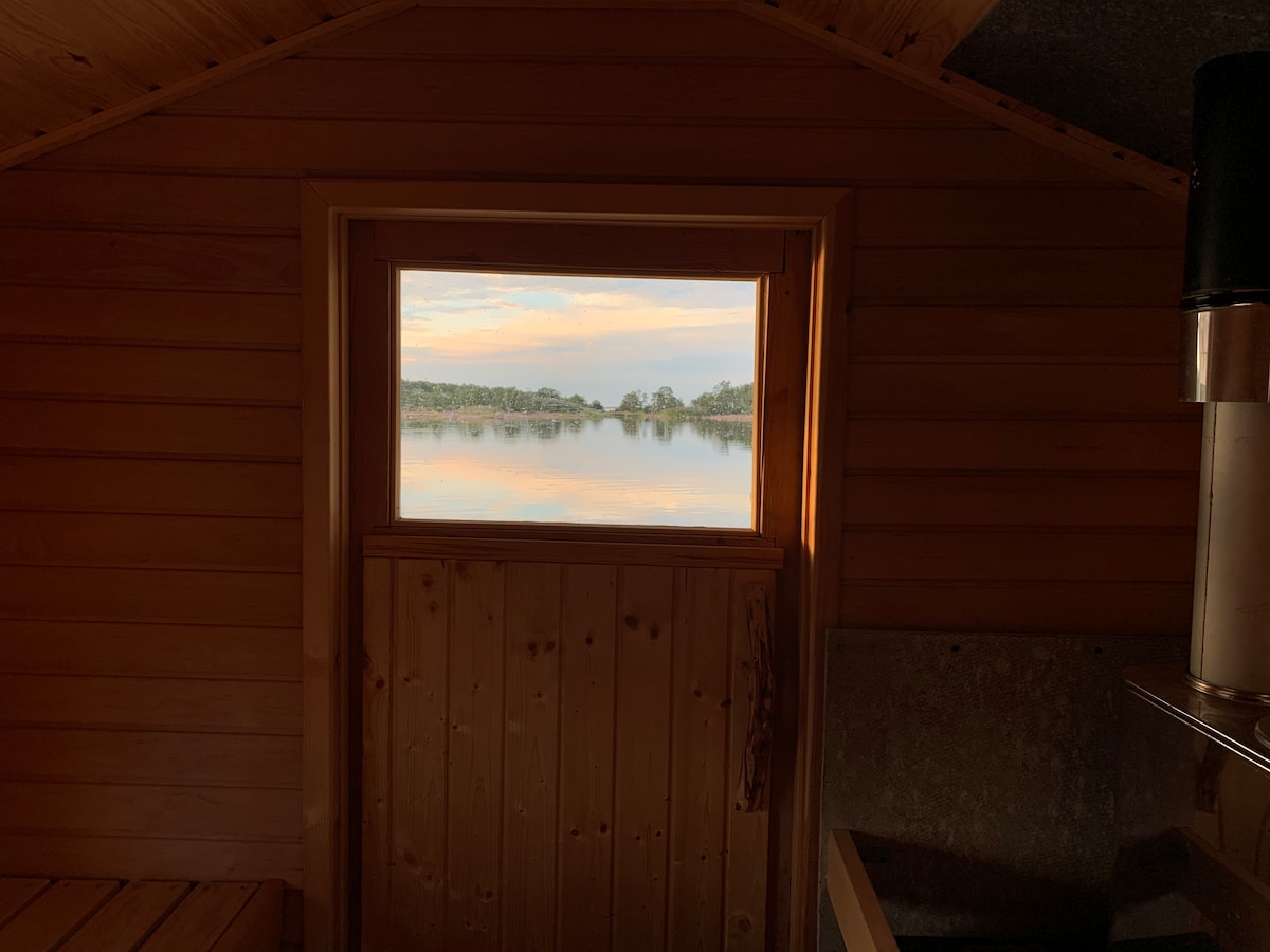 Welcome to our charming sauna cottage. Here we offer a unique and relaxing experience for two to four people, with a cozy sleeping area and a wonderful terrace that surrounds the cottage. Enjoy the quiet and tranquility of this idyllic place. After experiencing a lovely sauna, you can take a refreshing dip in the sea and enjoy the sun-warm rocks. The magical sunsets and breathtaking views of Lumparn will make you feel close to nature and make your heart beat a little more calmly.