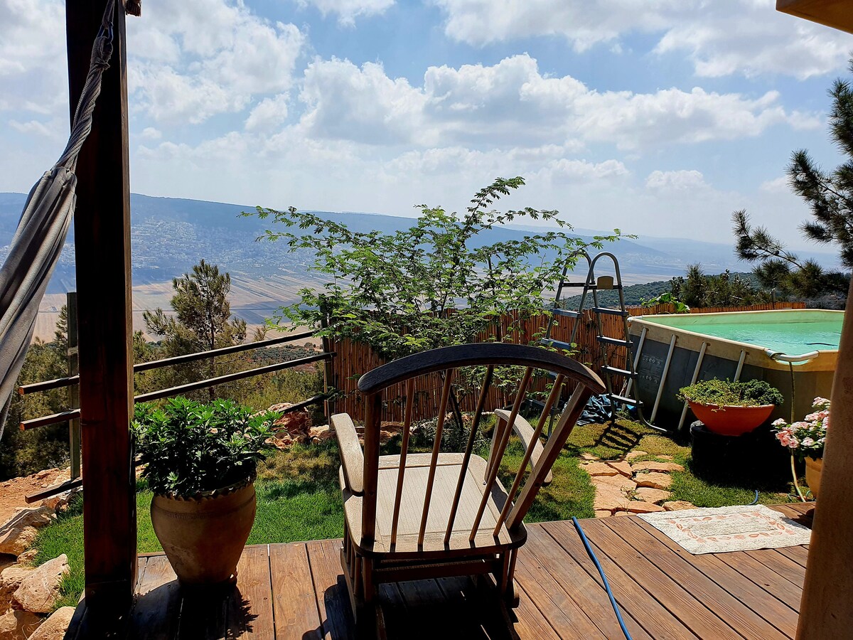 A beautiful and spacious guest cabin for couples in Gita, Galilee. With sea and cliff views, it borders a magical wadi and is surrounded by green nature. The cabin has a bright and stylish space. A large and luxurious double bed, fully equipped kitchen, unique shower, and a seating area overlooking the wadi from which you can go out into nature for walks. In the courtyard, a pampering hot tub in front of the viewโจ In the summer you can lower the temperature ๐ฆ The cabin was built with lots of love while paying attention to the small details to create a place that will give the perfect experience๐ค