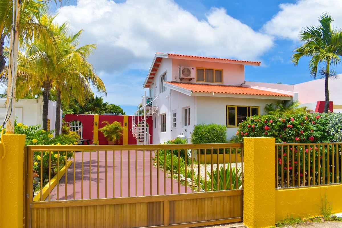 Cute townhouse perfect for a relaxing time, overlooking Hooiberg. Enjoy a beautiful tropical garden with a backyard and pool, ideal for a nice breakfast or coffee. Listen to birdsongs and feel the tropical breeze in the front garden, backyard, or by the pool. Conveniently located a 5-minute car ride from the airport, with the bus stop just a 10 to 15-minute walk away. Surfside Beach and local bars are within a 20 to 30-minute walk, and Oranjestad is a 15-minute drive