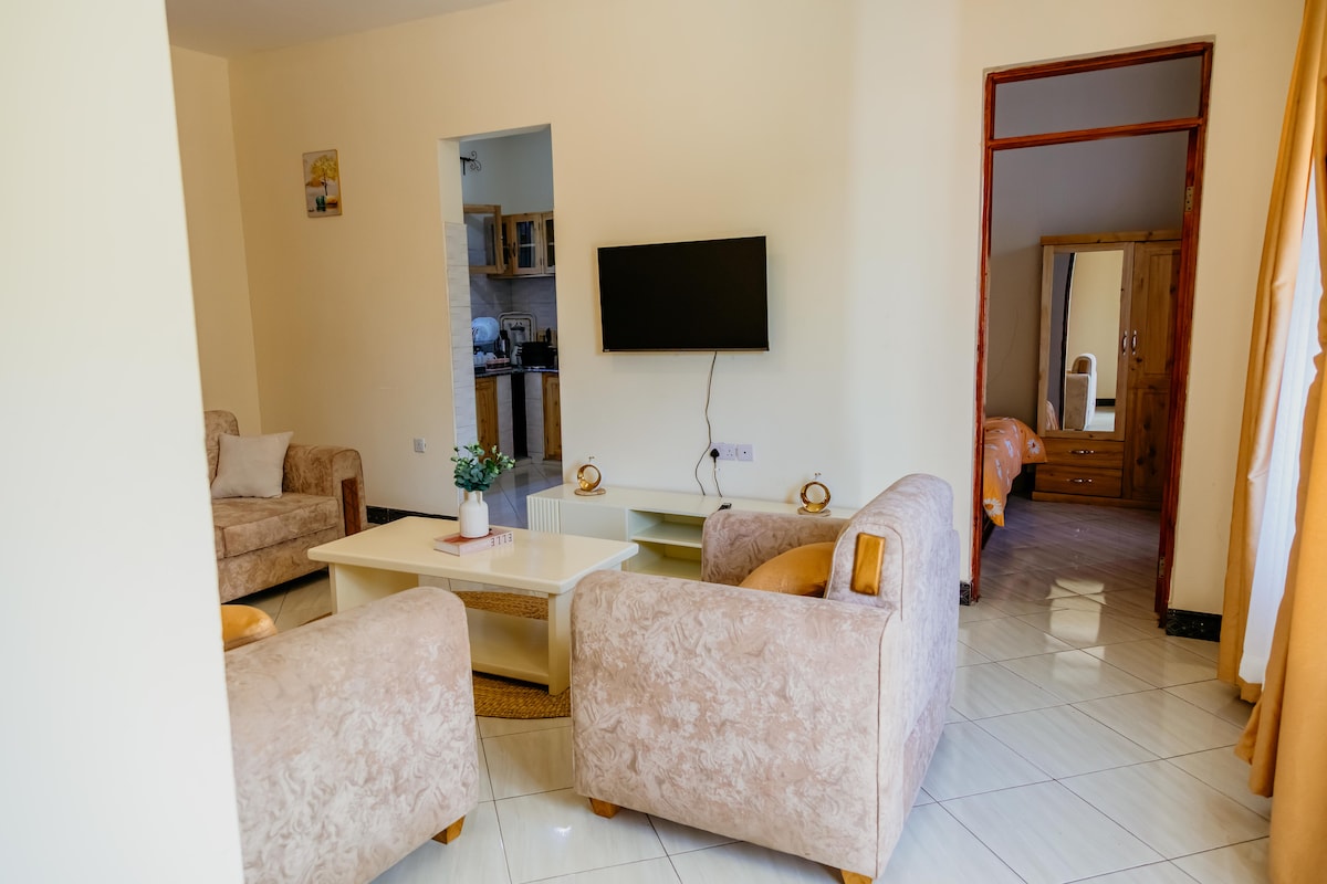 Charming Getaway Near Airport and Town Discover a stylish haven just minutes away from Arusha Airport and the vibrant heart of the city! This mid-century modern inspired apartment is a unique blend of comfort and character, designed for the ultimate relaxation.