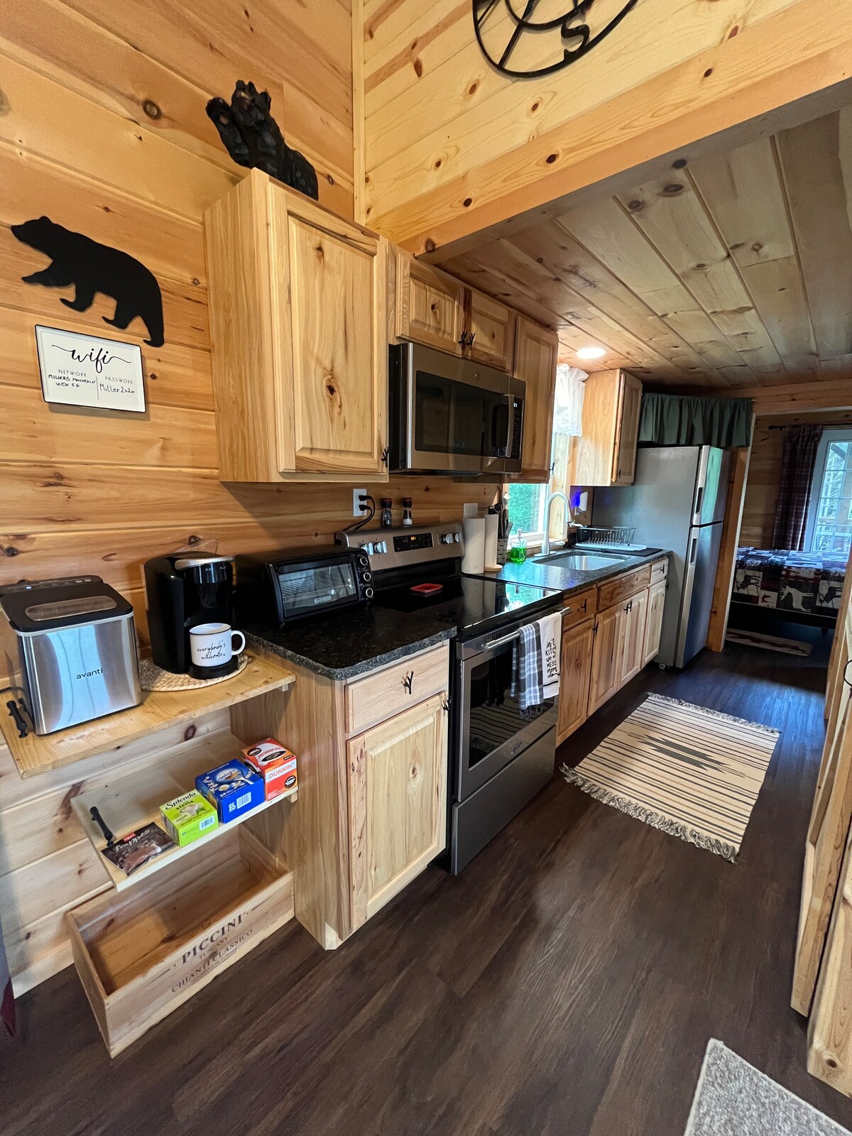 Enjoy an authentic mountain adventure in comfort at our private tiny glamping cabin. Complete with sleeping loft, outdoor shower, covered patio with grill, outhouse and fire pit.Located on 40 acres in the middle of the National Park with driveway directly off the BRP. Nearby you can enjoy waterfalls, rafting, hiking, fishing, mt biking, frescoes, skiing …Additional camping and other tiny cabins are also available on the property. Conventional full bath available nearby at the main cabin 24/7