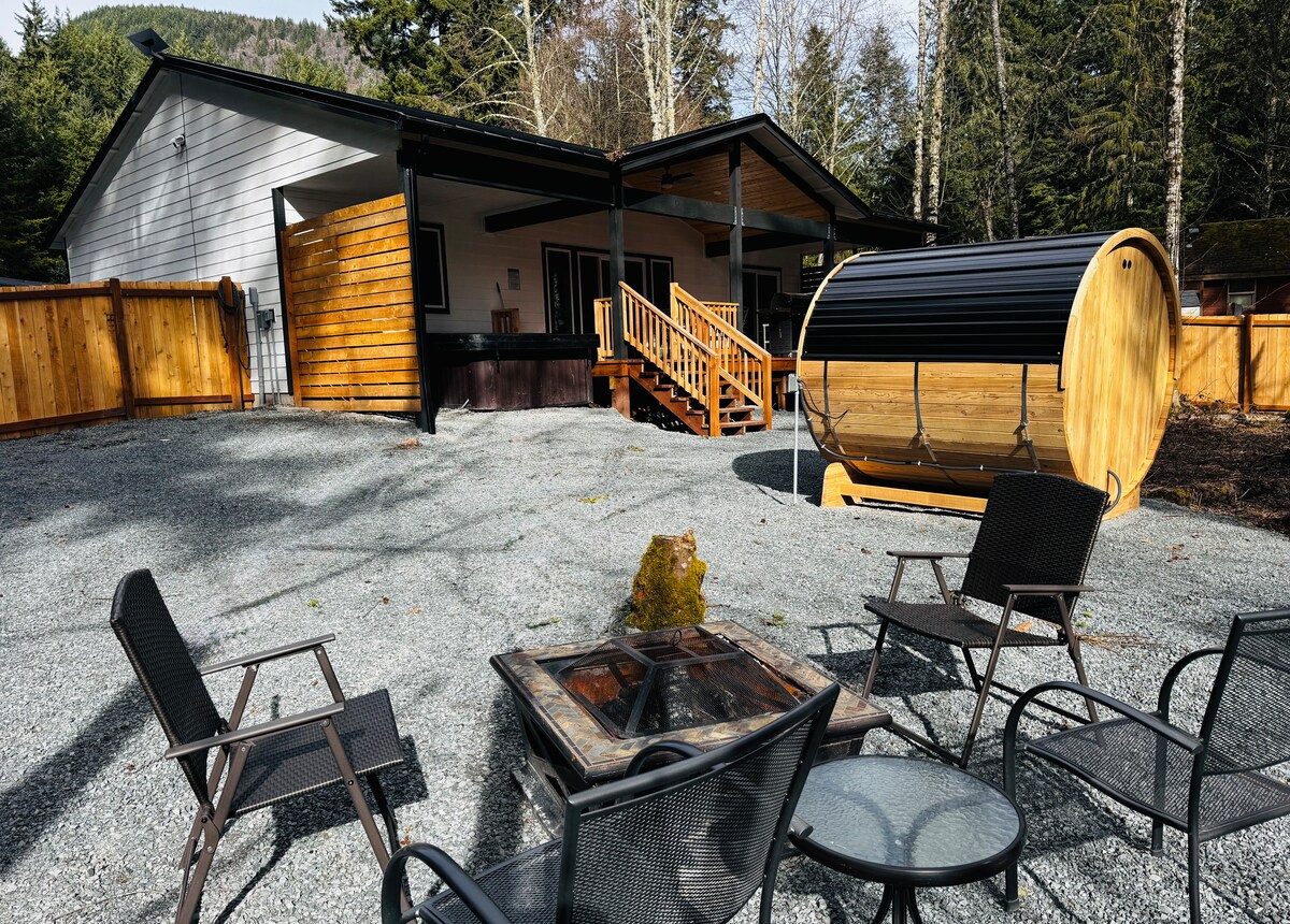 Tilted Timbers is our family cabin rental located 5 minutes from the park’s Nisqually Entrance. This relaxing A-frame forest retreat offers a private cedar hot tub, wood-burning stove, and fire pit, making it the premier choice for visitors seeking an authentic Ashford mountain experience. Our 2-bedroom home sleeps 5 and comes fully equipped with amenities. Enjoy easy access to year-round hiking, local restaurants, and the stunning natural beauty of the Pacific Northwest.