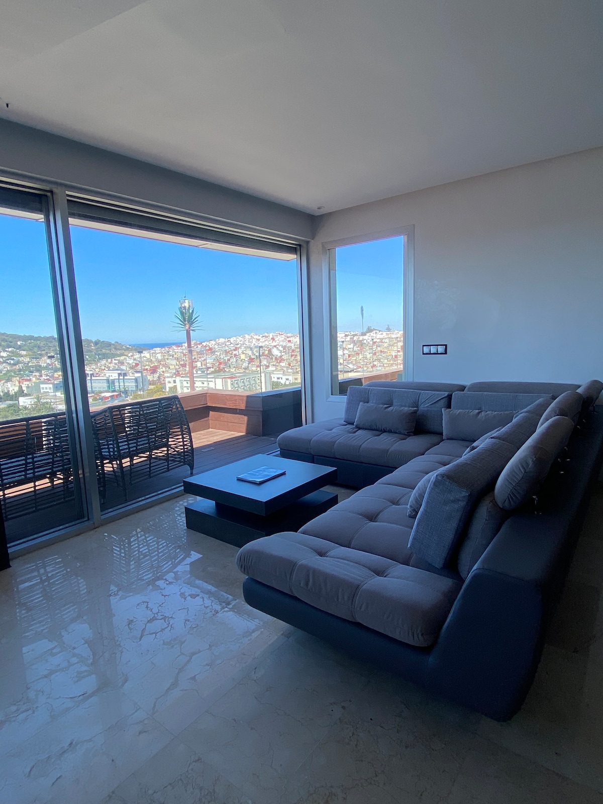 **Please read the description to the end** Discover our charming apartment in Tangier, conveniently located in a gated and secure complex, just a short walk from the Mövenpick Hotel, the Tangier Casino, and various cafés and restaurants. Enjoy a beautiful, spacious terrace with breathtaking views of Tangier Bay, perfect for a morning coffee or a sunset aperitif. Ideal for couples and families looking for an unforgettable getaway.