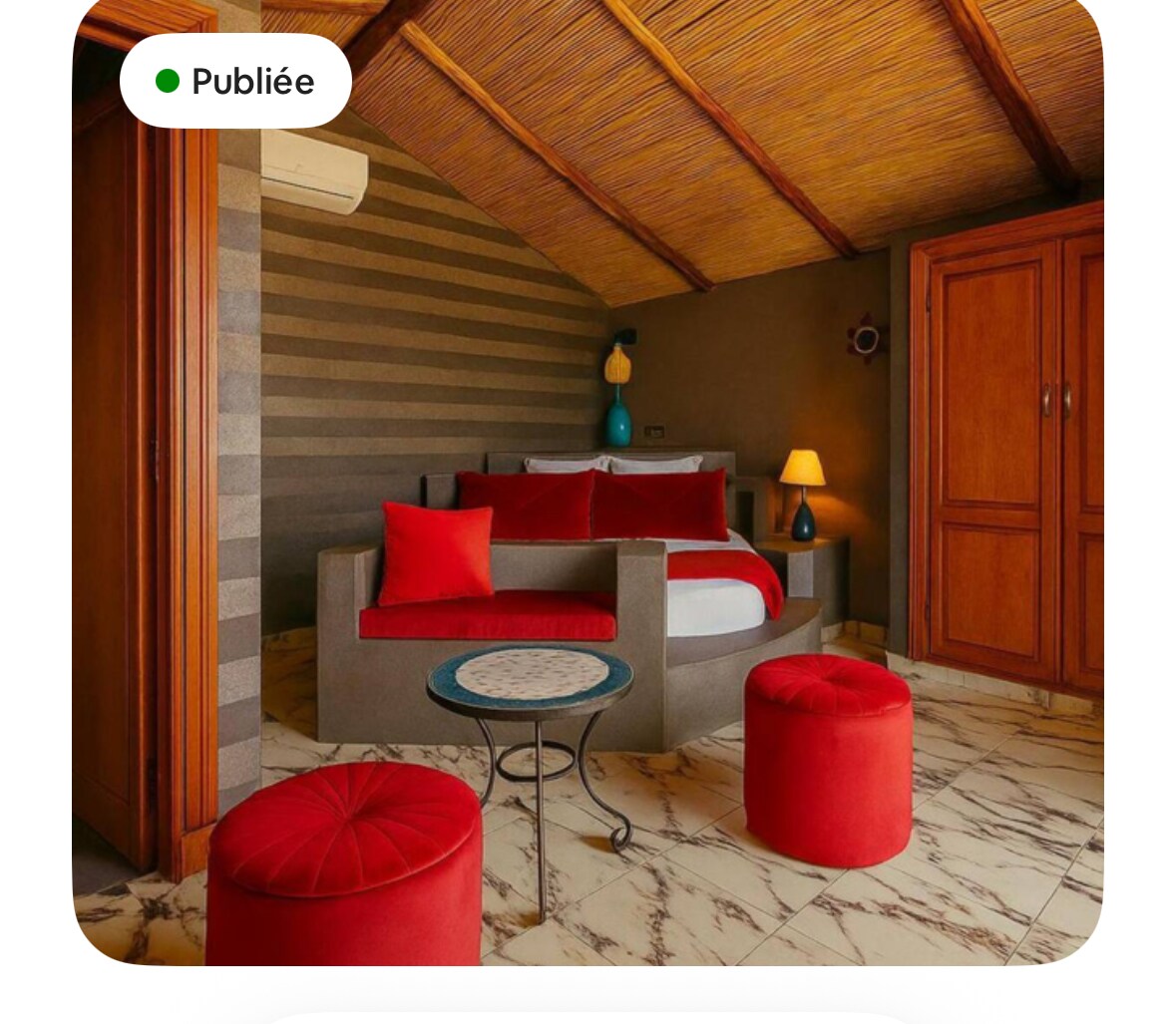 Offrez-vous une parenthèse enchantée aux portes de Marrakech. Ces 5 bungalow indépendant vous accueille dans un cadre paisible et verdoyant . Reposez-vous dans une chambre confortable avec clim , profitez de la grande piscine partagée , savourez une cuisine gourmande à 50m , ou détendez-vous au hammam traditionnel . Idéal pour les couples et familles en quête de calme. Parking, Wi-Fi et services inclus. Évasion garantie !