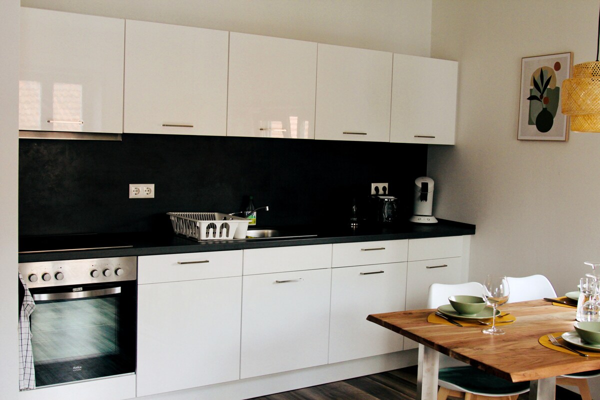 Your 80 square meter apartment has a bright living room with open kitchen, two bedrooms and a shower and tub bathroom. The apartment is centrally located on the promenade and you can enjoy a fantastic view of the city harbor and the castle from the balcony, which you can reach in a few minutes on foot. The nearby city center attracts with theaters, museums and many gastronomic facilities. Your car can be parked in the underground garage upon request. Heike and Dirk are looking forward to seeing you
