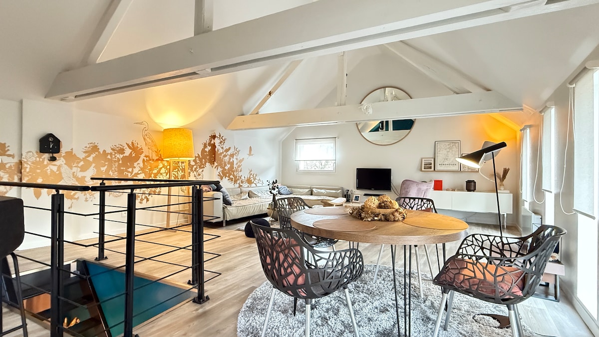Modern and very well-equipped holiday flat directly on Lake Constance with its own beach and several outdoor seating areas. In summer it is wonderful to sunbathe, cool off in the lake and barbecue on the large terrace. In the colder months, the barrel sauna (Extra fees) in the garden, the fireplace, the duo bathtub and the direct lake view invite you to linger in a cosy atmosphere.