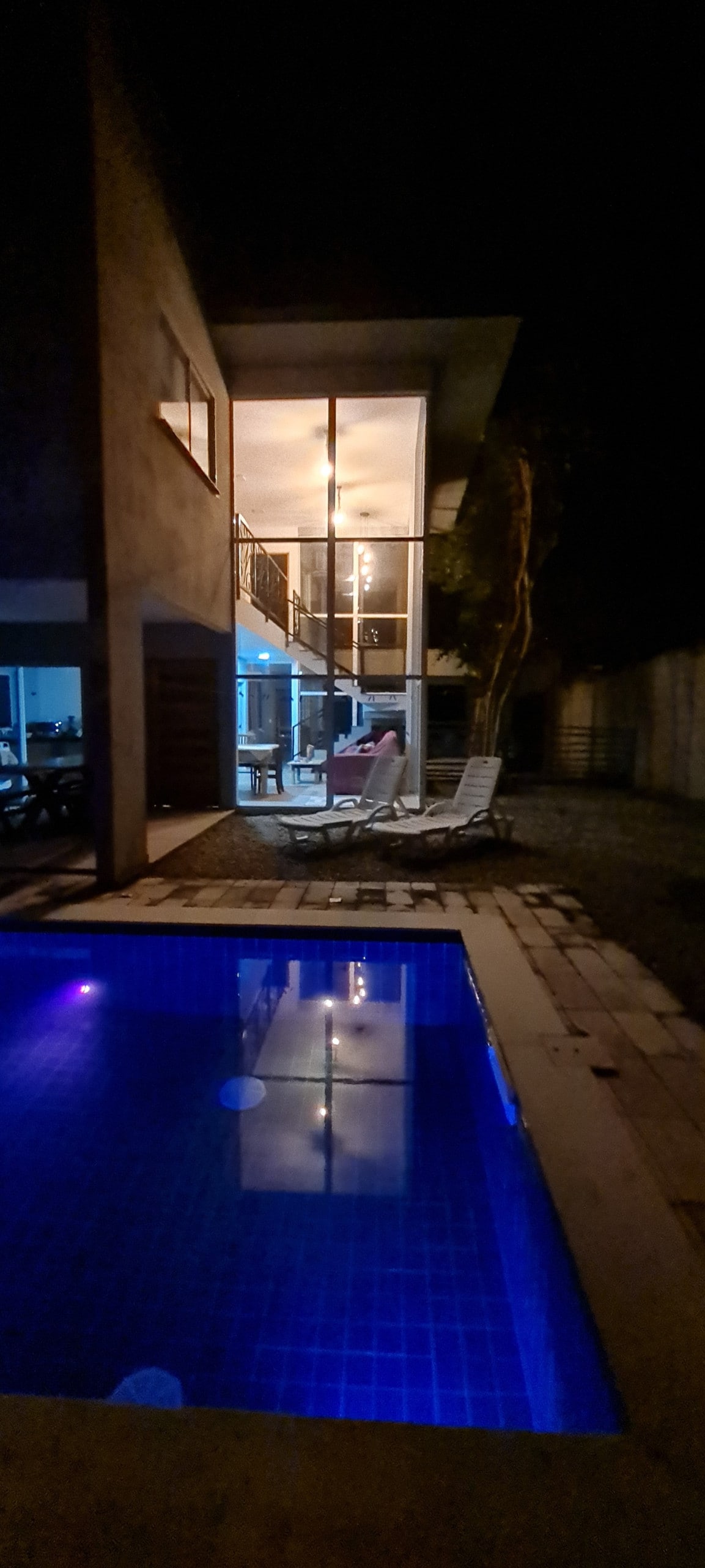 House located in a private condominium with swimming pool a few meters from the center and Pipa beach. The house overlooks Dolphin Bay and the Atlantic Forest. Triplex ocean view on all floors, has 2 en-suites with air-conditioning and private barbecue area.