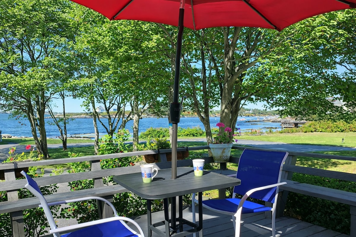 Need a couples getaway? Well look no further! This recently updated one-bedroom cottage holds great charm. Although it has a small footprint there is a full kitchen, full bathroom with a stand-up shower, and a dining room table. Enjoy keeping with the nautical theme as you make your way up the very steep stairs to the full-size bed and rooftop deck. Enjoy a coffee or a cocktail in the Adirondack chairs overlooking the breathtaking Maine coast. Book today!