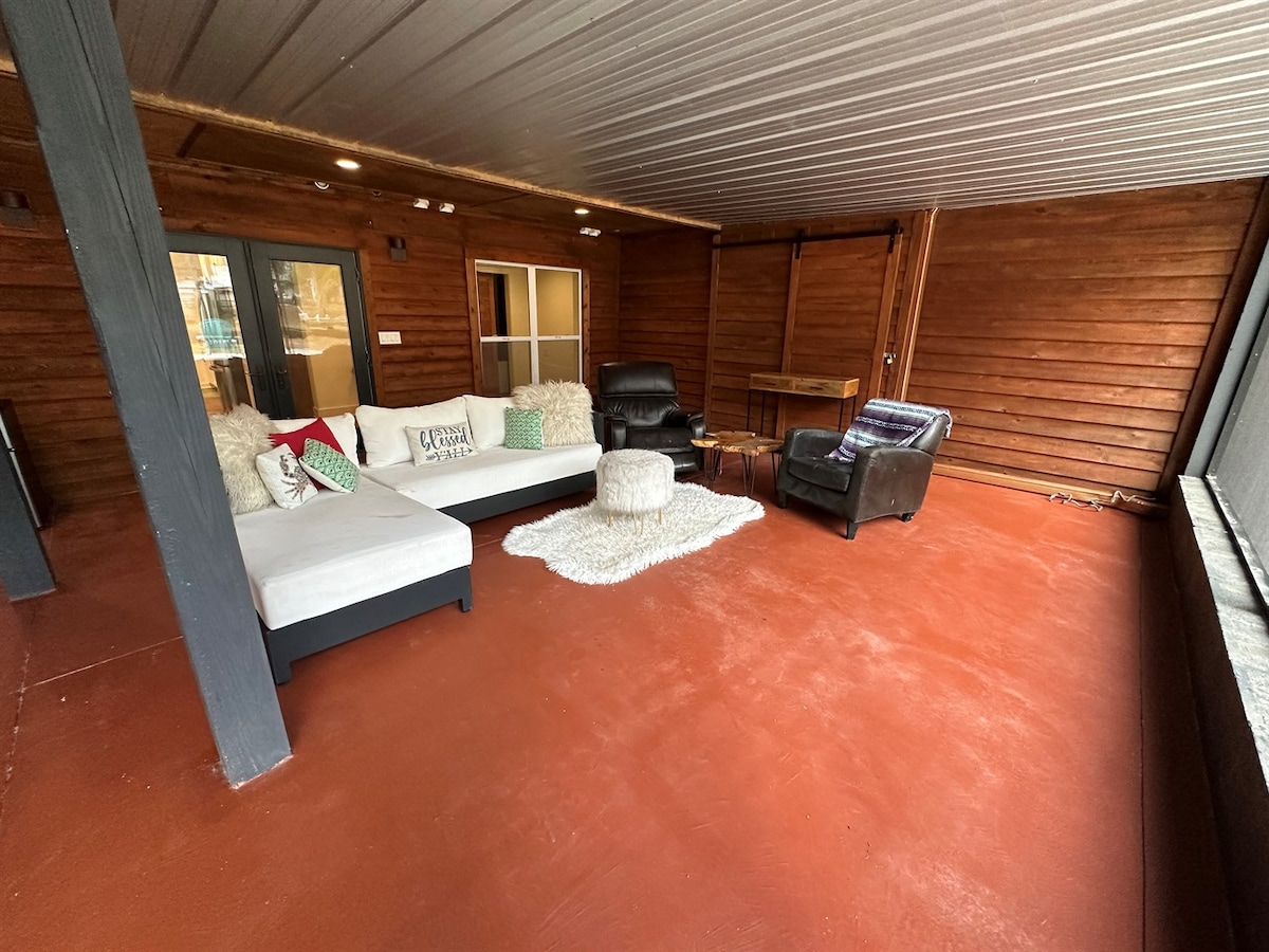 Large inviting studio apartment with a private entrance in a home set on 5 acres. The guest studio has lots of natural light and views onto the property. Studio includes queen-size bed, sitting area and private bathroom. Coffee and hot tea are included, as well as a small frig, coffee maker, and microwave. Guests will also have access to a large screened-in porch (a common area with owners), perfect for drinking your coffee while listening to the birds, or reading a good book.