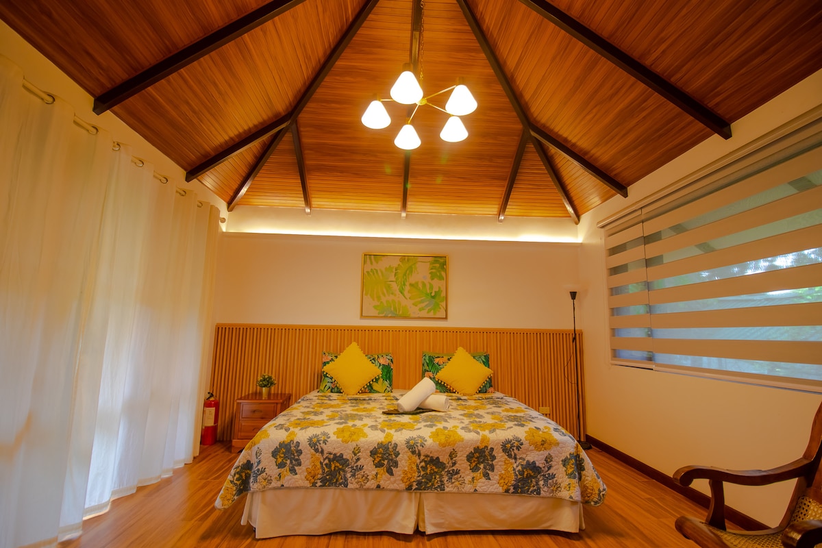 Sampaguita Room 2 offers a warm and inviting retreat, featuring a Filipino-inspired design complemented by soothing earthy tones. Sunlight gently fills the space through large windows, providing relaxing garden views, while the high wooden ceilings add an airy and comfortable ambiance. The room is equipped with cozy twin beds, thoughtfully curated décor, and a private CR and T&B—making it an ideal choice for couples, friends, or small families looking for a peaceful and comfortable stay.