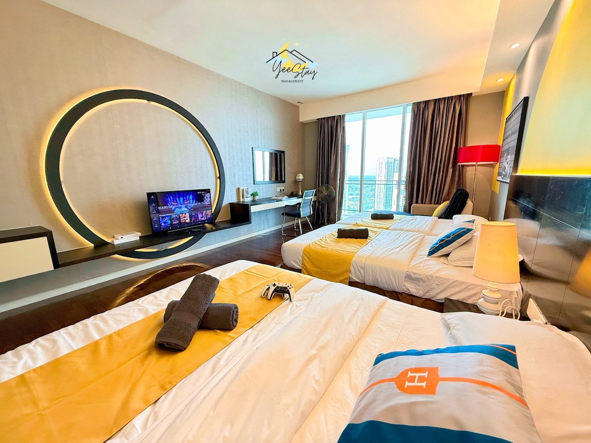 Welcome to our charming suite, perfect for friends, couples, and travelers seeking a trip to the heart of Malacca. Our suite offers a peaceful and serene space for rest while being strategically located near popular tourist attractions. It's an excellent base for immersing yourself in the beauty of Malacca. Experience breathtaking sea and night views, and find tranquility for your soul and mind! Our suite is a hotel-style homestay located within The Straits Hotel And Suites building.