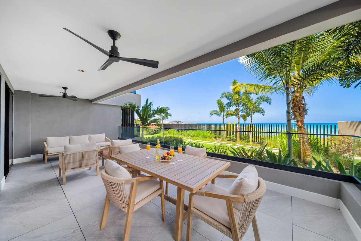 Welcome to Anidele Blue! Kick back and relax in this calm, stylish, inviting space, located on the northern end of the recently completed Allure Condominiums. There are breathtaking views whether you are inside the light flooded open plan living, dining and kitchen area, any of the three en-suite bedrooms, or out on the private patio! There are also stunning, panoramic sea views as you access the roof deck, with plunge pool, fire pit and sun loungers. Beautiful sunsets await! Sea you soon!