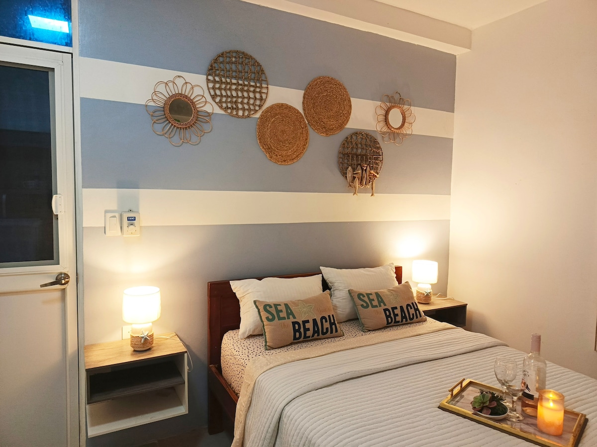 Enjoy a cute and private en-suite room, Private entrance. located in a residential sector, 50m from the ocean.