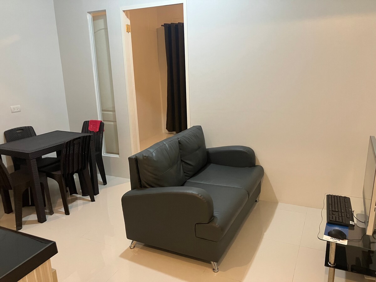 Enjoy our newly furnished 24 sqm studio, just 10–15 minutes from Mactan Airport. It features a comfy double bed, a sofa bed, Complimentary Wi-Fi, a kitchenette, Smart TV, and a balcony with airport views. Located on the 3rd floor of a low-rise building with NO lift—please keep this in mind when booking. Our secure gated condo is close to shops and local dining. Perfect for solo travellers, couples, or business guests. Message us anytime!