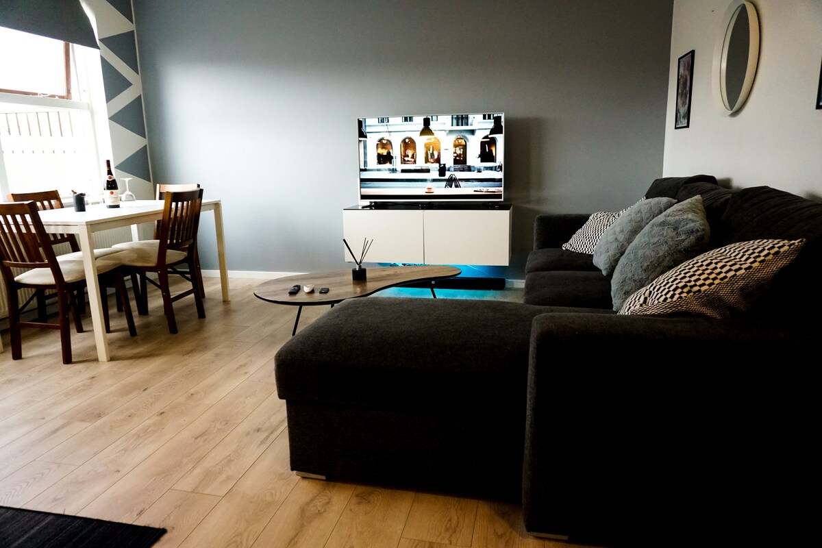This small (30 m2 / 35.8 square yards) cabin is located on an active horse breeding farm in the heart of Borgarfjörður, close to local attractions. The cabin has everything you need for a comfortable few days stay, except groceries. The cabin can accommodate 4 people: two in the bedroom with double bed, and two in the sofa bed in the common area. Great views of the surrounding countryside.