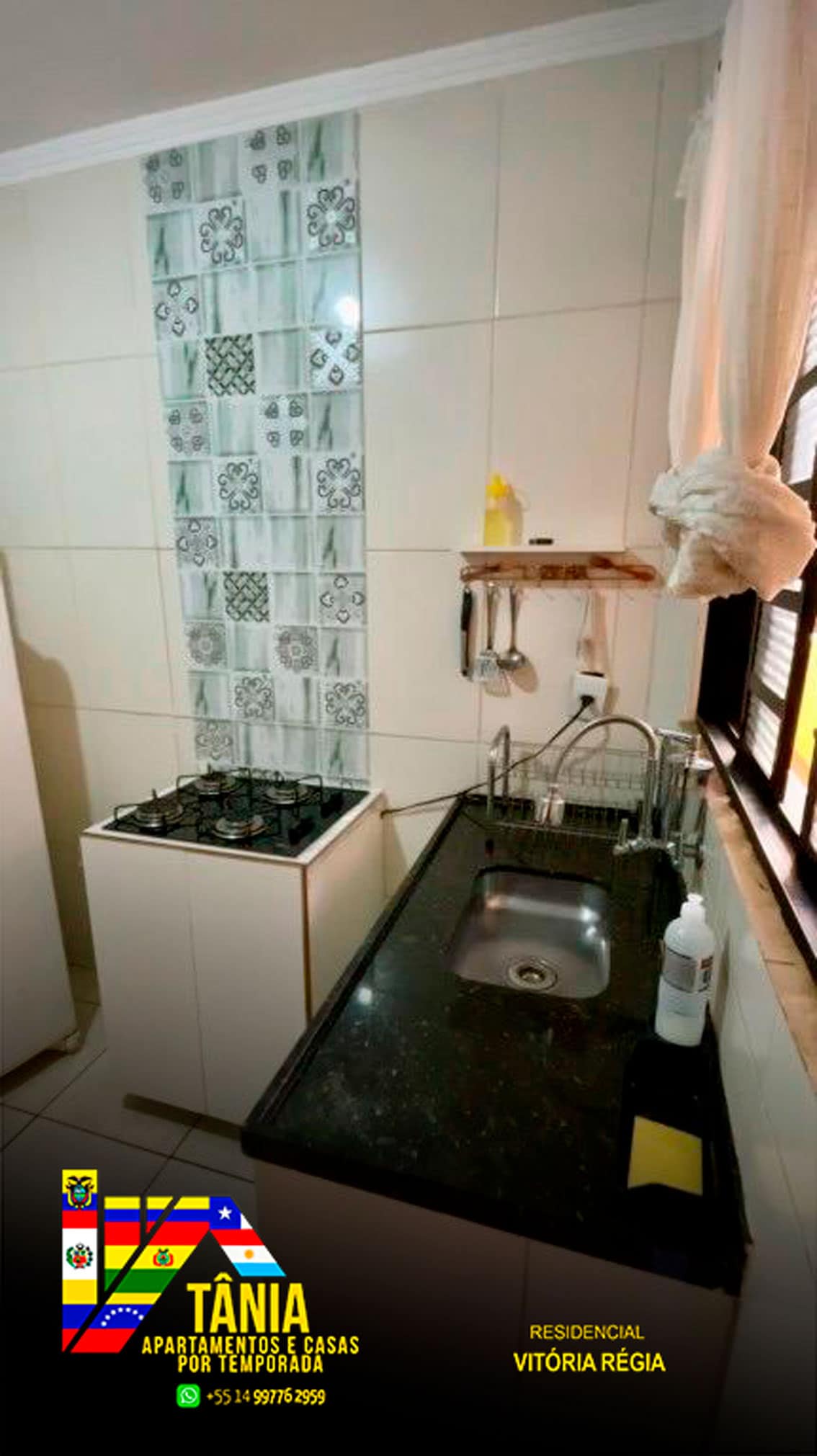 Kitnet in Residencial Vitória Régia - Bauru/SP, offers: - wifi - Smart TV - Private WC - Parking - Equipped kitchen - Comfortable furniture - Bed linen and bath - Air conditioning in the dormitory - 2 single box beds (which can become 1 double bed) The residential complex has a barbecue and social area. It has camera monitoring in common areas. Quiet and safe region. Close to Restaurants, Bars, Pharmacies, 24-hour Supermarket and Parque Vitória Régia.