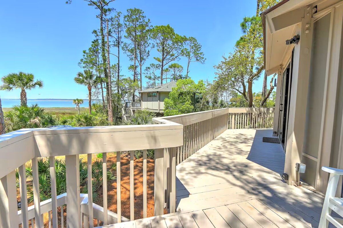 This tranquil, private, river retreat has incredible views of the marsh and the Beaufort River. Located in popular Pigeon Point, you are just a short bike ride or a 20 minute walk to the historic district and downtown Beaufort. I also have another more glamorous and exotic property next door see it at: airbnb.com/h/motm Enjoy fishing and crabbing right in your back yard at high tide or take a short walk down to the boat landing where you can watch people hand cast nets for shrimp!