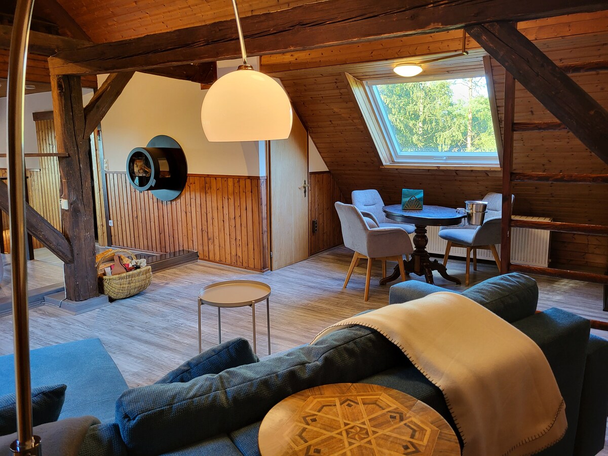 In this spacious and special apartment, the whole family will feel right at home. A touch of romantic charm, unique furnishings, plenty of solid wood, and a fantastic view over the town of Rotenburg an der Fulda make this top-floor apartment truly special. Within just 5 minutes by bike, you can reach the town center, and you'll find plenty of shopping and leisure options right on your doorstep.
