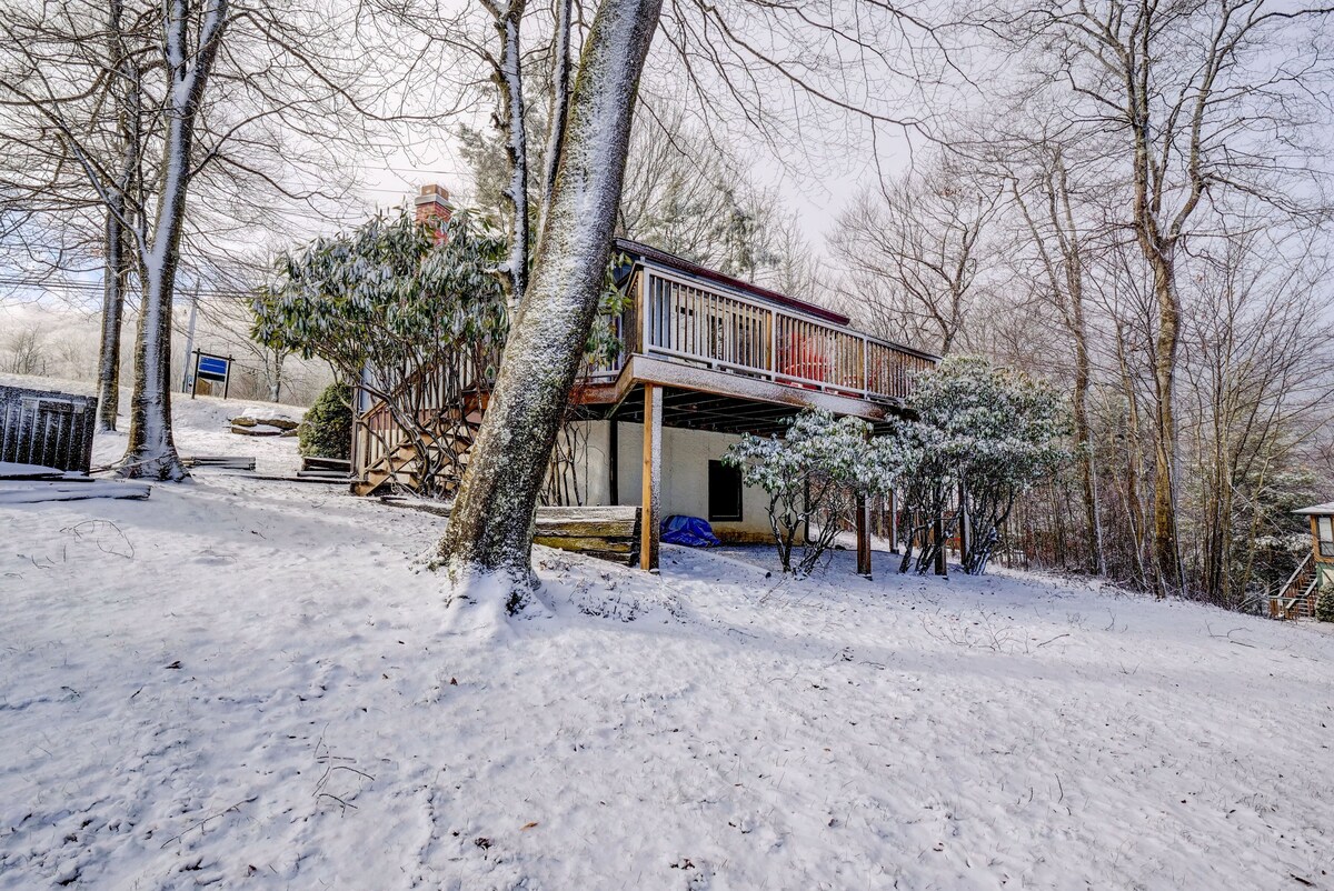 This cozy round house is located across the street from the slopes at Beech Mountain & walking distance to restaurants, bars & the local coffee shop. This home is convenient, clean and charming. An open living, dining & kitchen area is centered by a wood-burning stone fireplace. Beautiful mountain views from the expansive deck when the leaves have fallen complete your highland experience. The perfect spot for a ski or mountain biking trip or just a cozy mountain getaway!