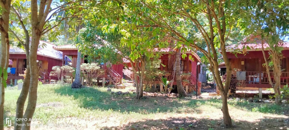 Island life local Khmer family owned spacious bungalows. Located by the seafront of Mpai Bay beach, with fruit garden access and walking distance to the village. You can relax on bungalow patio hammocks or rent snorkeling equipment to see sea corals. If you are adventurous Krewpheak, the owner will rent you kayaks to explore neighbor islands. We invite solo travelers, couples and families to come enjoy the colorful and vibrant sunrises. Hope to see you soon.