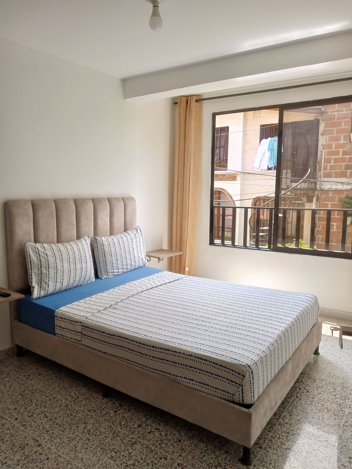 .Es un luminoso y central Apartamento en Bello Cabañas. Cuenta con dos baños completos, Sala comedor, puesto de trabajo, cocina. Tiene tres alcobas, cada una con su Closet. La alcoba principal tiene cama queen, baño privado. Está a 5 minutos caminando a centros comerciales como fabricato y Metro Bello, donde tú encuentras gran variedad de restaurantes tiendas etc. Es un apartamento totalmente acondicionado para invitados individuales o Familias. Parqueadero privado.