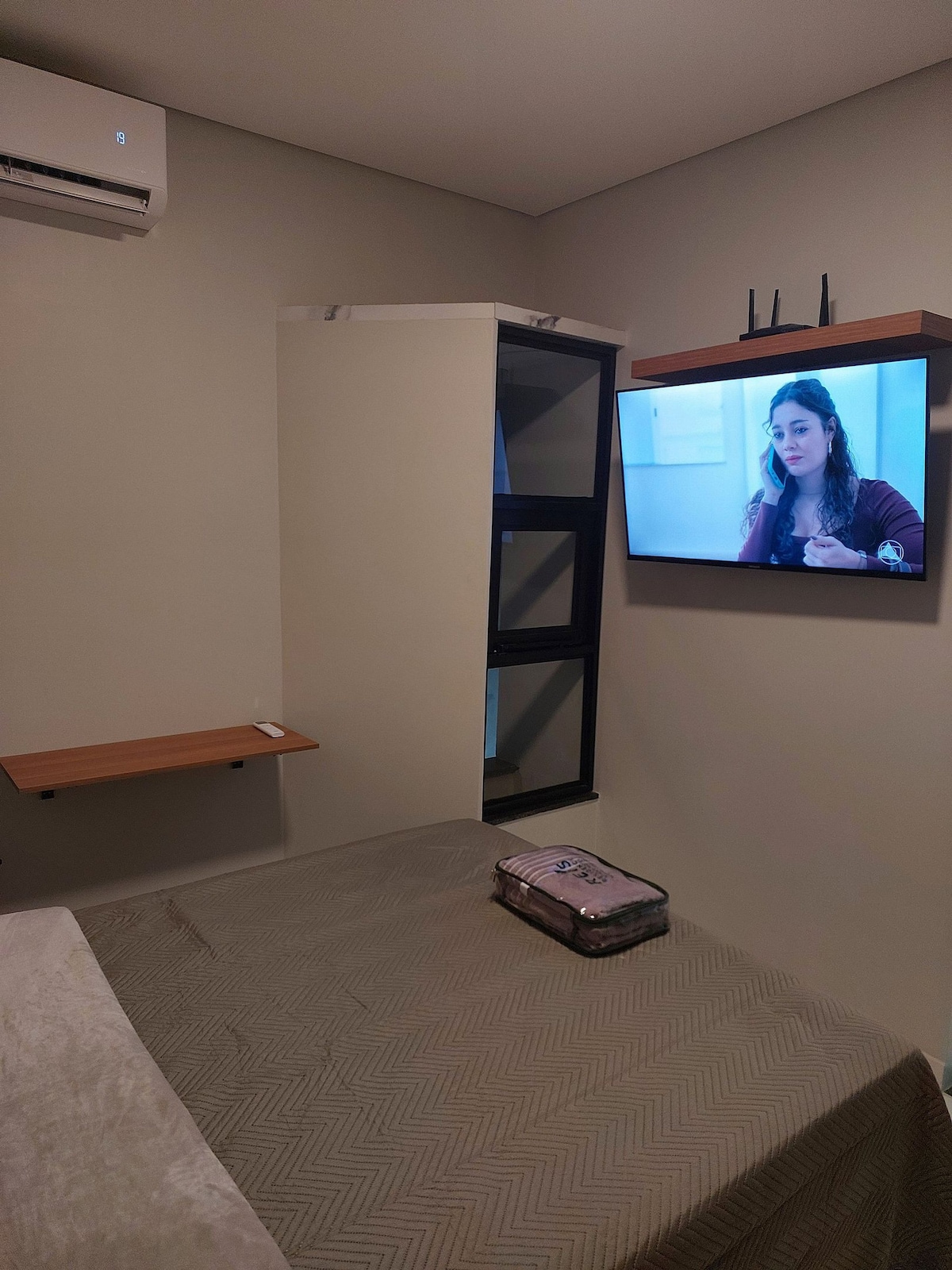 *São 2 quartos para 3 pessoas*. São dois quartos ; um com cama de casal, e ar condicionado ,uma mesa com cadeira; outro com uma cama de casal, dois colchões de solteiro e um ventilador e uma arara de roupa . Geladeira, tv, Wi-Fi , mesa e 4 cadeiras, sofá, louças, liquidificador, sanduicheira, uma vaga na garagem. Não paga, água , Gás , IPTU e nem Condomínio . Luz apenas consumo . Várias áreas de lazer, 2 Piscinas, 2 quadras , área pra churrasco, portaria 24 horas. Entrada só com autorização