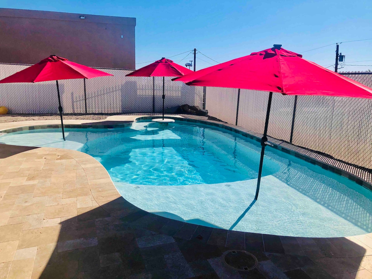 Your Lake Havasu getaway for families and groups. ☺ ★ Private pool (heated & chilled - addl cost), BBQ grill, and outdoor dining patio. 3BR • 2BA single level near the lake, restaurants, and boat ramps. Perfect for family vacations, group trips, or long weekends in the Arizona sun. +Central A/C and heat +Heated & chilled pool +BBQ grill & outdoor seating +Kitchenette with dishwasher +Washer + dryer +Driveway parking (trailers welcome) Prior notice required for pool to be heated