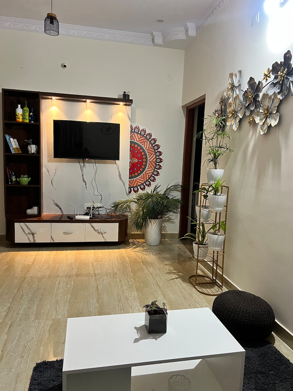 Welcome to our brand new, spacious 2-BHK house, ideal for families and groups seeking comfort and convenience. The bedrooms have king/queen size beds with orthopaedic mattresses. Relax in the large living room with a 43-inch Smart TV, super-fast WiFi and a dedicated dining area. Comes with two super clean bathrooms stocked with bath essentials. The fully equipped kitchen includes high-quality appliances and crockery for your culinary adventures.