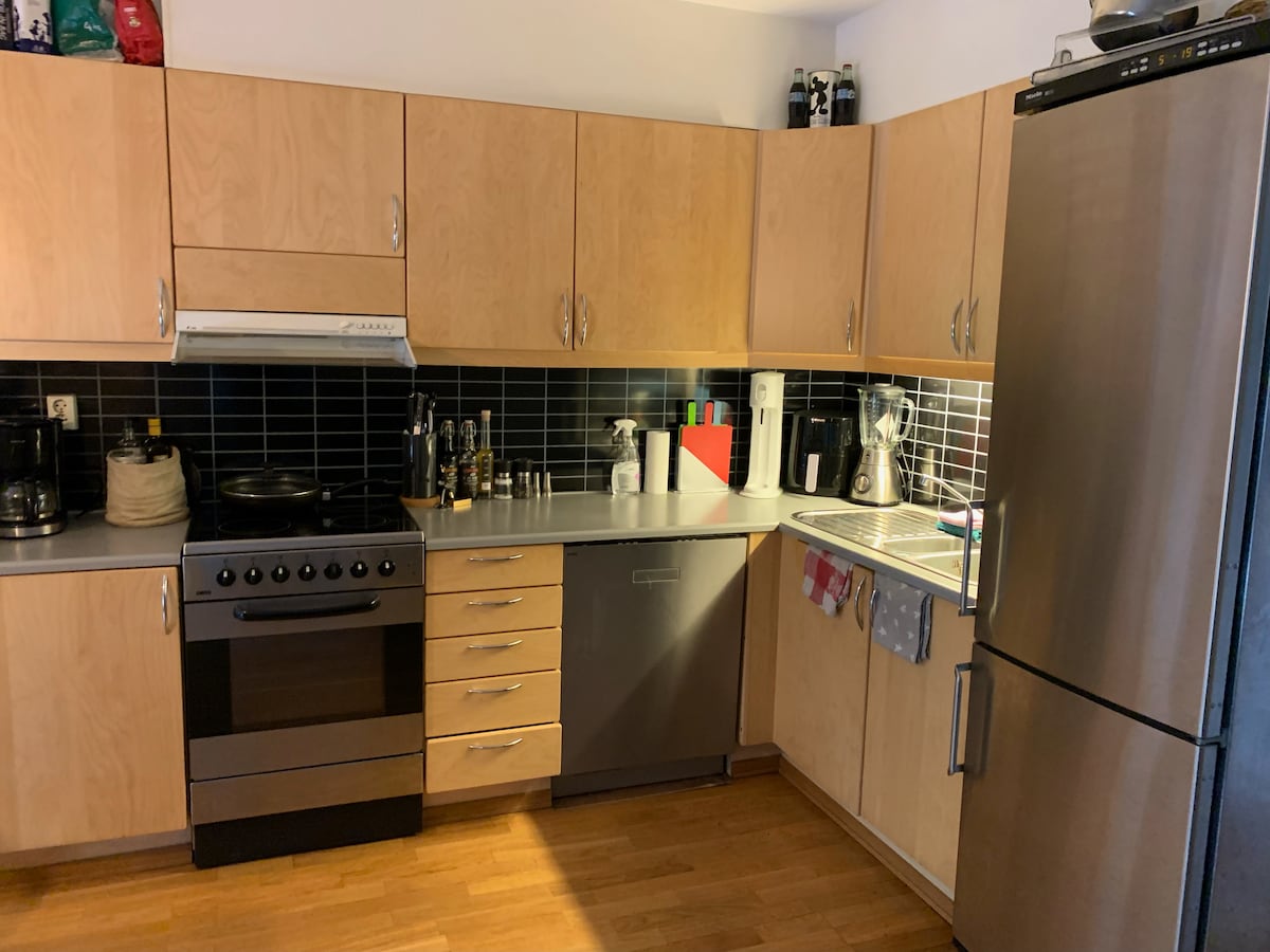 Modern apartment in a central and quiet area. The metro, a 3-minute walk away, will take you to the city center in 10 minutes. The apartment has everything you need for a pleasant stay. The bedroom has a double bed with memory foam matrass, light-proof curtains and soft linen bedding. Additionally, it has a sofa bed in the living room. Oslo is not lacking in the food scene, but if you rather stay in you´ll have a well-equipped kitchen with everything you need to make some delicious meals.