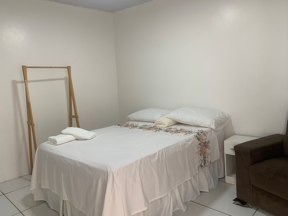 Individual apartment, half rustic with a large, air-conditioned and comfortable space containing: A double box bed, hack, TV Smart 43", wooden macaw with shoe rack, small closet. Table with chairs, minibar, cabinet with household utensils, electric stove (2 mouths), microwave, air fryer pan, sandwich and blender. It contains wi-fi and is well located, about 5 minutes from Int de Boa Vista Airport, close to a supermarket, pharmacies, gyms, colleges, newspapers, etc...